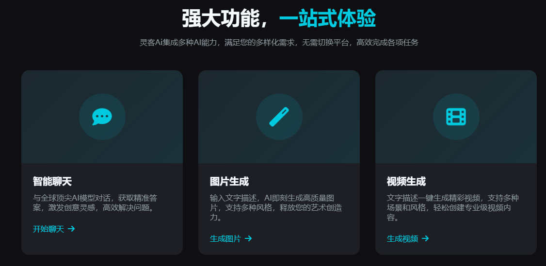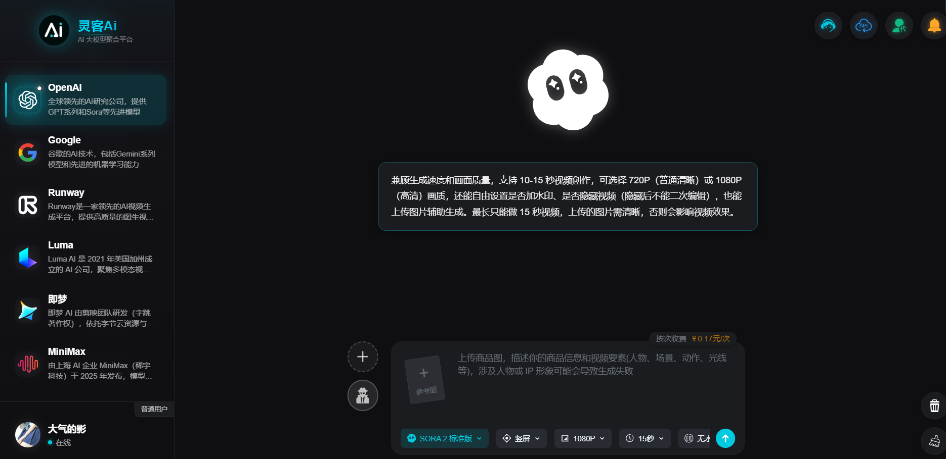 灵客Ai通过聚合大量AI模型,为用户提供了一个便捷的多模态内容生成入口,覆盖了从文本、图像到视频的多种需求。