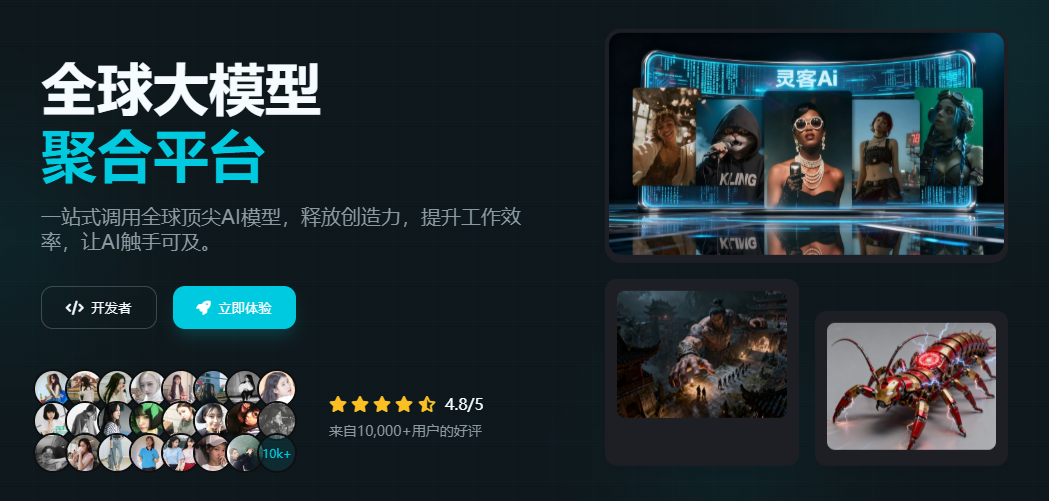 灵客Ai是一个全球大模型聚合平台,整合了超过100个主流AI模型,支持文本、图像和视频的生成与处理,旨在通过一站式服务提升用户的工作与创作效率。